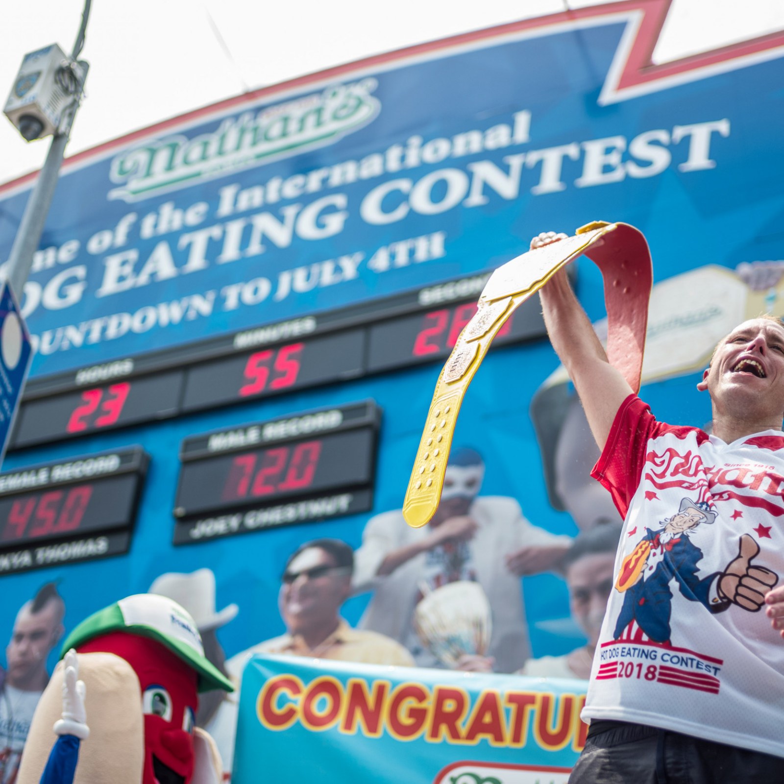 Joey Chestnut Eats 71 To Win His 12th Straight Nathan S Hot Dog Eating Contest Congrats Now Have Some Cake Sports